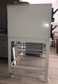 Forno elettrico dimensioni interne camera LxPxH 124x84x18(x2) cm - dimensioni esterne LxPxH 155x113x75 cm temperatura 50/500°C. Totale pizze diametro 40:n. 12 - teglie 4+4 . Piano refrattario