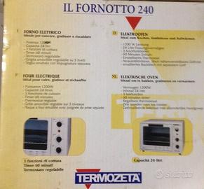 Come da titolo, vendo forno elettrico Termozeta(Fornotto 240). Potenza 1200 w Capacità 24 litri Termostato regolabile 3 funzioni di cottura