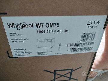 Vemdo forno elettrico Whirlpool mod. W7 OM75. made in Italy. Forno da incasso tecnologia elettrica avanzata per cucinare risparmiando energia. Innovativa funzione Cook3, che consente di cucinare fino a tre piatti diversi contemporaneamente senza il rischio di mescolare gli aromi. Porta forno con chiusura rallentata per un maggiore comfort di utilizzo. Ancora completamente imballato. Vendo per decisione cambio cucina ed elettrodomestici.