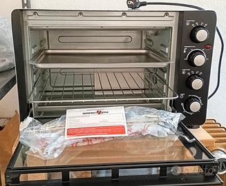 Il fornetto è stato utilizzato per due mesi, poi dismesso causa trasloco. È inutilizzato e conservato protetto da pellicola e sacco d'imballaggio. Il fornetto è stato acquistato da Comet per una cifra pari a 160€ circa. Prezzo proposto 100€. Informazioni per il ritiro: il forno è conservato in uno spazio a piano terreno, è possibile anche parcheggiare l'auto davanti all'ingresso per non portare peso. Caratteristiche tecniche: Capacità: 60 l Potenza: 2.500 W Termostato regolabile Ventilato Funzione girarrosto Grill Pareti fredde Luce interna Timer A x L x P: 39,7 x 69,7 x 46,3 cm Usato poche volte, perfettamente funzionante.