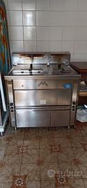 Vendesi attrezzature per polleria, panineria, friggitoria composte da: Forno Air-o-convect 10 teglie autopulente completo di addolcitore, griglia polli, vano aperto + supporto vassoi e teglie varie; Armadio frigo da lt 1500 2 porte; Elettro aspiratore + cappa; Friggitrice inox due vasche da lt 15+30; Per info 3394201003