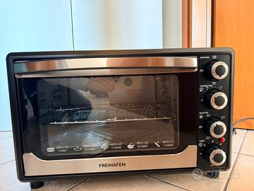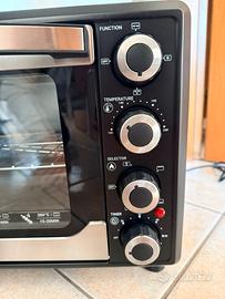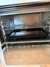 Dotazioni: vassoio per briciole, maniglia per teglia da forno, maniglie per girarrosto, teglia da forno, manico per girarrosto, set per girarrosto, manuale di istruzioni.