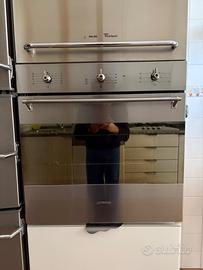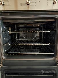 Il forno elettrico da incasso Smeg, modello SC381X-8, appartiene alla linea classica del produttore italiano ed è caratterizzato da un'estetica in acciaio inox satinato anti-impronta. Il pannello di controllo frontale ospita tre manopole analogiche coordinate per la gestione delle funzioni di cottura, della temperatura (fino a 250°C) e del contaminuti con fine cottura automatico. La porta è dotata di un ampio vetro a specchio con maniglia a tutta larghezza in metallo, che garantisce una visione chiara dell'interno durante l'uso. La cavità interna, smaltata in nero, è equipaggiata con un sistema di ventilazione forzata per una distribuzione uniforme del calore e dispone di tre livelli di inserimento per teglie e griglie. L'elettrodomestico è progettato per un incasso standard da 60 cm e include tra le sue dotazioni interne due griglie metalliche.