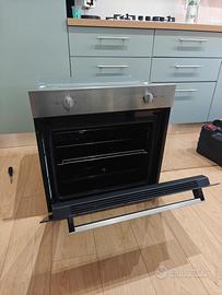 NUOVO MAI USATO!!! INDESIT FORNO LT 74 L.59 P.57 H.60 CLASSE A STATICO CON 3 FUNZIONI COLORE INOX Questo modello della linea forni Indesit si caratterizza per la particolare porta Click&Clean, un sistema brevettato per rimuovere e pulire la controporta in vetro del forno. Un'operazione facile e veloce, che richiede solo due gesti, senza utilizzare utensili. Il forno è multifunzione con 3 funzioni di cottura (resistenza superiore, resistenza inferiore, resistenza superiore e inferiore) Il forno è completo di 2 manopole esterne, con programmatore meccanico e ventilazione di sicurezza radiale. In dotazione ci sono 1 griglia, 1 leccarda e luce interna. Il sitema di pulizia Steam&Clean Elimina ogni traccia di sporco utilizzando solo il vapore, senza alcun detergente. Il consumo di energia (funzione statica) è di 0.82 kWh, il volume utile di 74lt, la temperatura massima di 250 °C, la potenza massima nominale regolabile di 2500W. Classe d’efficienza energetica A. Tensione: 220-240 V; Corrente: 13 A; Frequenza: 50 Hz 64 x 65 x 67cm(larghezza, profondità, altezza)