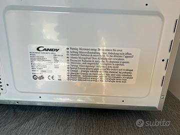Vendesi al costo di 150€, ritiro a carico dell’acquirente, forno a microonde Candy CMG 25D CS, nuovo e dalle linee moderne, è caratterizzato da una camera di cottura da 25 litri, un grill con una potenza massima di 1000 w, otto programmi automatici di cottura, un programma di decongelazione e decongelazione.