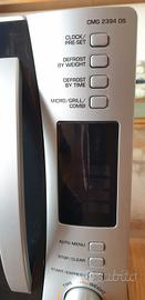 Vendo forno microonde 900 Watt con grill 1000 Watt, 23 litri, 8 programmi, timer 95 minuti, diametro del piatto 31,5 cm, nuovo con libretto istruzioni originale. Materiale in acciaio inox. Modello CMG 2394 DS.