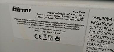 vendo forno microonde Girmi rosso vintage mod. FM 21 , 20 litri, come da foto