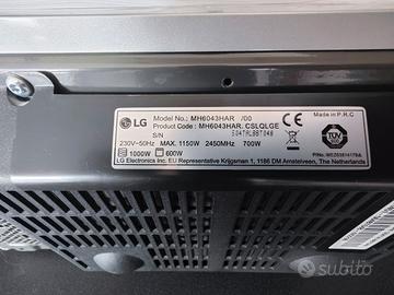 vendo per passaggio a modello da incasso forno a microonde marca Lg 1000 W, in ottimo stato. Modello MH6043HAR/00