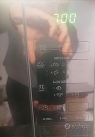 Fornetto a microonde della LG modello MH6043HAR /00 da 20 litri: Funzionalità principali GRILL AL QUARZO RIVESTIMENTO EASY CLEAN™ i-wave RISPARMIO TEMPO PERFORMANCE Capacità (litri) 20 Sistema Cottura Grill Potenza cottura microonde (W) 700 Potenza Grill (W) 600 Potenza microonde (assorbimento W) 1000 Potenza grill (assorbimento w) 600 Assorbimento max (W) 1200 Potenza microonde + grill (W) 1150 Livello di potenza cottura microonde 5 ACCESSORI Grande piatto 23 CARATTERISTICHE ESTERNE Peso netto (kg) 14 Peso lordo (kg) 15.5 Dimensioni interne (lxaxp) mm 310 x 196 x 294 Dimensioni esterne (lxaxp) mm 455 x 252 x 320 Cavità interna Rivestimento Easy Clean Cavità i-wave Si Colore Mirror Silver CARATTERISTICHE TECNICHE Pannello comandi Soft Touch Display digitale Sì Timer Sì Sicurezza bambini Si PROGRAMMI Avvio veloce Si Scongelamento rapido Si Grill disponibile. Solo scambio a mano.