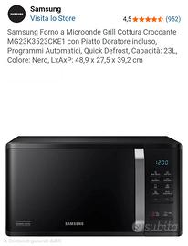 Livorno e zone limitrofe, no spedizioni !Samsung forno microonde grill pari al nuovo, cottura croccante , con piatto incluso, programmi automatici, quick de frost, capacita' 23 litri, colore grigio . Misure 48,9 cm x 27,5 cm x 39,2 cm ( Nuovo si trova al costo di 145,00 euro )