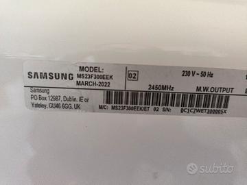 Forno a microonde Samsung modello MS23F300E. - Colore nero. - Design moderno. - Manopole argentate. - Usato pochissimo in quanto stava in una casa vacanza - Potenza fino a 800W no-grill - Manuale incluso Prezzo trattabile