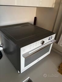 Forno a microonde Supreme Chef termoventilato combinato, 5 funzioni di cottura: Vapore, Crisp, Ventilato (1700W max), Grill (1200W max) e Microonde (900W max), dotato di sensori 6° SENSO che regolano automaticamente il programma di cottura. • Tecnologia Forced Air permette, grazie al lavoro della ventola, di diffondere il mensioni del prodotto49P x 54l x 37,3H cm • Colore Bianco • Capacità33 Litri • Caratteristica specialeTecnologia Crisp Fry e Forced Air • Usi consigliati per il prodottoUtilizzo domestico • calore all'interno della cavità per un risultato di cottura paragonabile ad un forno tradizionale. • Tecnologia Crisp Fry: una frittura dorata e leggera, anche senza aggiunta di olio, grazie all'azione combinata di Dual Crisp e Forced Air • Funzione Dual Steam: cottura a vapore rapida e sana con recipiente a due scomparti , con 2,7 litri di spazio utile ed impostazioni preprogrammate • Piatto girevole da 36 cm • Dimensioni del prodotto: H 37,3 x L 49 x P 54 cm • Accessori in dotazione: Double Steamer, griglia alta, piatto Crisp + maniglia