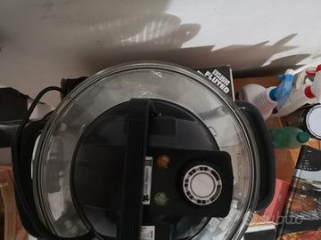 Il forno a convezione multiuso può essere utilizzato per cuocere al forno, grigliare, arrostire o cuocere a vapore, il tutto in meno tempo. Preserva i nutrienti e mantiene le carni tenere. Fa circolare l'aria riscaldata forzata dalla ventola sulle superfici in modo uniforme e mantiene una temperatura uniforme. Ciotola in vetro di sicurezza per alte temperature.