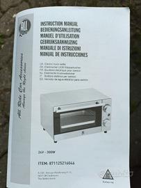 forno elettrico in acciaio inox, 24v 300 watt per camion/camper/barca completo di leccarda e griglia, manopola funzioni e timer. Misure 35x23x18. Nuovo mai usato. Prezzo 45€ Posso spedire