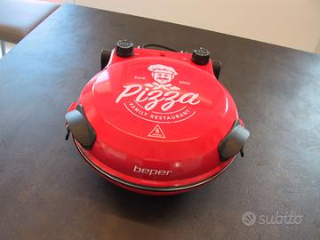 Forno elettrico per pizza Beper con Piastra Refrattaria Rimovibile, dotato di 5 Livelli di Cottura e Timer. Cottura perfetta grazie ai suoi 400°C ed alla pietra refrattaria potrai gustare una pizza direttamente a casa tua. Adatto per le pizze appena impastate e/o surgelate. La piastra di cottura da 31 cm di diametro è facilmente removibile grazie alle maniglie termoisolanti. Questo ti permetterà di servire la pizza direttamente nel piatto.
