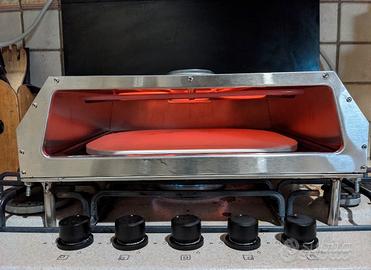vendo fornetto per pizza modificato, originariamente l'unica fonte di calore proveniva dal fondo mediante fornello o brace. Successivamente è stata inserita anche una resistenza sul cielo, e' stata poi sostituita la base inferiore con struttura in acciaio facilmente removibile per la pulizia ed infine è stato coibentato il case per evitare scottature dall'estero dovuto al contatto. In dotazione un biscotto da tagliare a misura.