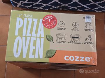 Forno Pizza CLASSIC marca Cozze da 13 pollici a Gas, Pietra in cordierite inclusa | Accensione automatica | Termometro integrato | Acciaio inossidabile | Cottura veloce 2 min.