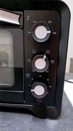 Fornetto ventilato, usato per un corso di cucina. Modalità sopra, sotto, combinato, provvisto di vassoio e griglia, timer acustico. Arriva a 230°, adatto per carne, arrosti, pizza e dolci. In ottime condizioni, seminario.