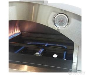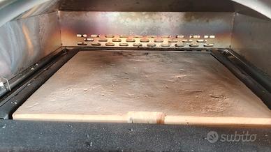 vendo forno per pizza a gas speedy 500 usato doppio bruciatore completamente in acciaio pino cottura grande 33x34 cm raggiunge 500 gradi in 20 minuti pietra refrattaria originale + biscotto di casapulla del valore di 59 euro e sacco di protezione originale del valore di 40 euro. Tutto usato veramente poco cambio per passaggio a piatto rotante Il forno e in ottime condizioni usato 2 estati comprato nuovo a 480 euro più tutti gli accessori elencati