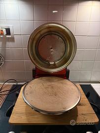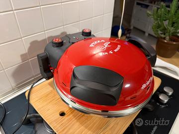 Cuoce la pizza in 4’ , raggiunge una temperatura di 400 gradi, con pietra refrattaria di 32 cm antiaderente , 5 livelli di cottura, usato poche volte cedo per passaggio a forno piu grande.