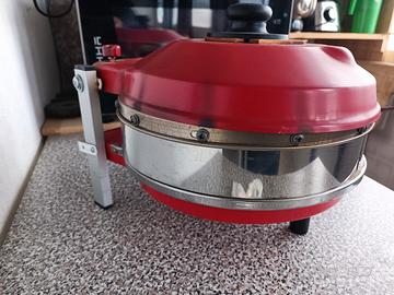Vendo forno pizza Spice Caliente modificato, sullo stesso sono state sostituite entrambe le resistenze con una sola resistenza da 1500W, è stata sostituita la pietra refrattaria con un biscotto per una migliore cottura, inserito un rialzo affinché si possano cuocere pizze più alte ed infine all'interno delle cupole, superiore ed inferiore, è inserito un cuscinetto di lana di roccia per isolare la camera di cottura. Faccio presente che il termostato non funziona più, pertanto bisogna accendere e spegnere il fornetto durante l'utilizzo per evitare un eccessivo riscaldamento, io utilizzavo una presa comandata e staccavo l'alimentazione non appena il forno raggiungeva la temperatura desiderata. Raggiunge i 450° in 15 minuti circa, ed è in grado di arrivare ben oltre in 500°. Sono disponibili, qualora lo si volesse riportare all'originale, i pezzi che ho sostituito. Prezzo trattabile 80€, da considerare che il solo biscotto è costato 35€, e la resistenza altri 40€.