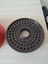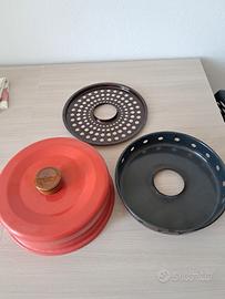 Forno da campeggio, comunemente noto come Omnia. Diametro 30 cm. Funzionamento: Utilizzabile su fornelli a gas, elettrici o a fiamma libera. Componenti: Composto da una base metallica, una teglia circolare con foro centrale e un coperchio. Utilizzo: Permette di cuocere come un forno tradizionale direttamente sul fornello. Consegna a Mondovì, Ceva o Millesimo.