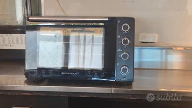 Vendo forno elettrico professionale a convezione (ventilato) marca Pyramidea, modello FCP4, in buone condizioni e perfettamente funzionante. Ideale per bar, chioschi, tavole calde o piccoli laboratori. Grazie alla ventilazione costante, è perfetto per la cottura di brioche, pane, pizze, gastronomia e piccola pasticceria, garantendo una doratura uniforme su tutti i livelli. Specifiche Tecniche •Capacità: 4 teglie (misura 435x350 mm) •Alimentazione: Monofase 230V (funziona con la normale spina di casa sciucco) •Potenza: 2670W (ottimo compromesso tra velocità di riscaldamento e bassi consumi) •Temperatura: Regolabile fino a 250°C+ •Timer: Analogico fino a 120 minuti + modalità cottura continua •Materiale: Struttura interna ed esterna interamente in acciaio inox •Sicurezza: Grado di protezione IPX3 e porta a doppio vetro termoresistente Stato del prodotto: forno robusto e affidabile, con meccanica analogica (molto più resistente dei modelli digitali). Ventola silenziosa e resistenze perfettamente efficienti. Prezzo: € 120 Ritiro a Milano zona Dateo Non spedisco