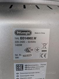 Come da titolo, per passaggio a modello superiore, vendo sfornatutto De'Longhi modello EO14902.W con spegnimento automatico, 14L, termostato regolabile, 5 funzioni di cottura, luce interna, Timer, interno antiaderente, Nero/Bianco, lxpxa 52x41x26cm. Il forno è perfettamente funzionante ed in condizioni ottimali. No offerte ridicole o perditempo. Grazie.