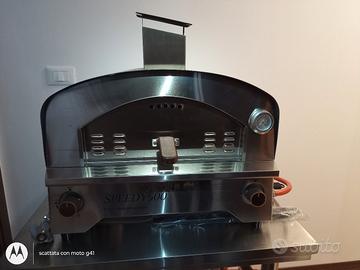 Forno Speedy 500 come nuovo per pizza e pane a GPL totalmente in acciaio inox con due fuochi, laterale e sotto piastra refrattaria compreso di copertura per esterno parzial.ente trattabile