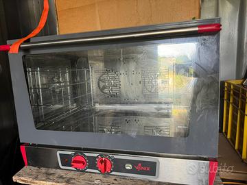 Forno elettrico termoconvettore a turbina Venix. Modello T04MP. * Capacità per 4 teglie 60x40. * Vaporizzatore ad acqua. Numero di vassoi: 4. * 2 turbine. * Costruito in acciaio inossidabile. * Doppia porta in vetro. * Misure: Frontale 75 x Altezza 56 x Profondità 65 cm. *Consumo 6,7 kw.