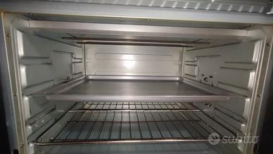 Vendo forno elettrico ventilato girarrosto 60 litri 2500W completo di griglia, teglia bassa l, girarrosto e pinza prendi teglia. Dimensioni interne L46X37P Dimensioni esterne Larghezza 65 Profondità 40 Altezza 40 Colore nero