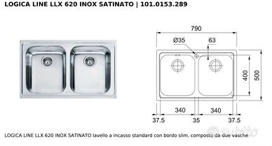 Franke LLX 620 Logica Line Lavello 2 vasche incasso 79 x 50 - inox satinato Da poco installato, vendo causa cambio cucina . NO SPEDIZIONE