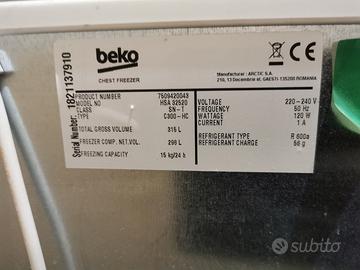 Regalo freezer a pozzetto BEKO MOD. HSA 32520 NON FUNZIONANTE, con difetto di congelamento(funziona in po poi va in blocco facendo scongelare la roba, ritiro a mano