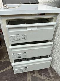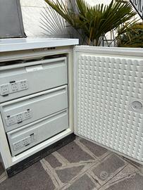 Vendo congelatore verticale a cassetti a marchio Bosch a 110 euro. Dopo anni di onorato servizio, sostituisco causa passaggio a congelatore più grande. Caratteristiche: - E' in grado di raggiungere e mantenere temperature di -18°C ed è dotato di 3 cassetti con stampate le linee guida per i tempi di conservazione degli alimenti (es. 2-6 mesi per il pesce, 6-12 mesi per le verdure). - Presente un vano "Accu", ovvero il cassetto superiore presenta uno scomparto dedicato per l'accumulatore di freddo (le classiche tavolette ghiacciate o "borse termiche"), utile per mantenere la temperatura in caso di blackout. - La controporta ha una caratteristica superficie bugnata con un termometro analogico rotondo integrato. - Il pannello di controllo frontale è dotato di una rotella per il termostato e tre spie luminose (tipicamente verde per l'accensione, arancione per il congelamento rapido e rossa per l'allarme temperatura). Non comprensivo di imballo originale. Non spedisco perché l’ingombro è eccessivo e pesante. Ritrovo in zona concordata per scambio a mano.