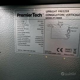 Freezer Congelatore 86 litri Nero -24° gradi 39dB PremierTech PT-FR86B Assolutamente funzionante, usato una sola estate, è praticamente come nuovo. Vendo cosa si vede nelle foto. Misure: 84cm altezza, 55cm largezza, 57cm profondità PremierTech PT-FR86B è un freezer verticale, completo di congelatore che offre una capacità complessiva pari a 88 litri. Questo elettrodomestico, contraddistinto dal design compatto e adatto in tantissime situazioni, garantisce una resa ottimale, visto che riesce a raggiungere temperature fino a meno – 24° a 0°. Alimentato con gas R600a, si rivela una scelta ecologica, efficiente e ad elevate prestazioni, grazie anche al freezer completamente coibentato e ai consumi annui che non superano 165 kWh.