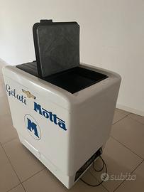 Freezer vintage a pozzetto Franger Frigor con scritta Gelati Motta.