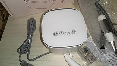 Fresa per Unghie Professionale 35000RPM, Display Digitale LED HD MISURE : 12,5X13X7 CM presenta fori sul fondo per inserire le punte fresa ed averle sempre pronte all'uso Include pennello, lima, supporto per mandrino, piedini in gomma adesivi, 4 punte tra cui una per cilindri abrasivi MAI USATA, APERTA SOLO PER LE FOTO E PER ACCENDERLA, PER MOSTRARE CHE FUNZIONA Fresa per Unghie Professionale 35000 RPM ideale per manicure e pedicure. Perfetta per rimuovere unghie in acrilico o gel, pulire e levigare le cuticole, nonché per rifinire, modellare e lucidare unghie naturali e ricostruite con precisione. Dotata di un motore silenzioso da 35 W che raggiunge una velocità stabile fino a 35.000 giri/min. Il pannello touch con display digitale consente di selezionare 35 livelli di velocità. Lo schermo LED mostra chiaramente la velocità e il senso di rotazione della punta, rendendo l’utilizzo semplice e sicuro. Progettato con fori di ventilazione multidirezionali per favorire una dissipazione del calore rapida ed efficiente, assicurando prestazioni costanti e massima sicurezza durante l'uso #fresa #fresaunghie #naildrill #electricnaildrill #naildrillmachine