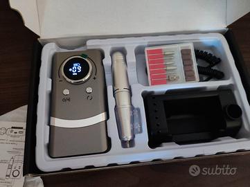 Vendo fresa unghie elettrica professionale, nuova e in ottime condizioni. È di colore grigio e argento, e include 6 punte. Perfetta per manicure e pedicure. - Mini fresa unghie elettrica di alta qualità