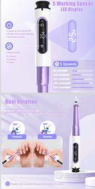 Fresa per Unghie Professionale 25000 Giri, 12 in 1 Lima per Unghie Elettrica Senza Fili, Fresa Unghie Portatile con Display LCD, Velocità Regolabile, Set Manicure Elettrico per Unghie Gel