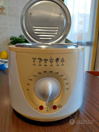 Friggitrice Termozeta a pareti fredde, capacità 1l, vano di cottura in acciaio inox, termostato regolabile fino a 190 gradi, 2 spie luminose di funzionamento e di pronto all'uso, cestello con impugnatura, coperchio amovibile (più facile da pulire e svuotare), Potenza 900W.Ritiro zona Tiburtina, Pietralata, Eur, Ponte di Nona.