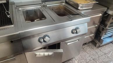 FRIGGITRICE A DUE VASCHE LT 20 + LT 20 usata Zanussi, cm 80x90x90h su vano armadiato con due antine a battente.