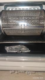 Friggitrice ad aria + grill Ariete Vintage completo di cestello per le patatine con relativa presa in metallo, girarrosto, 3 vassoi/griglia forate più 1 vassoio raccogli sughi.