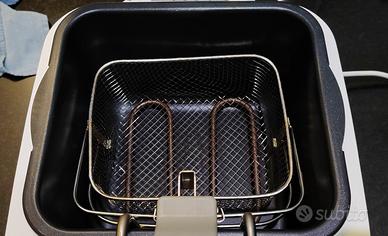 Easy Fry Metal friggitrice smontabile con cestello e vano olio lavabile in lavastoviglie con capacità da 2,5 a 2,9 It di olio e 800gr di fritto. Grazie alla finestra per il controllo cottura, il manico con controllo esterno per il sollevamento e lo sgocciolamento dell'olio a fine cottura, ai pratici manici per il trasporto e al filtro permanente, Easy fry Metal frigge senza rilasciare cattivi odori, cuocere velocemente grandi quantità di fritto di ogni tipo, è semplicissima da pulire.