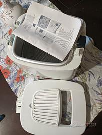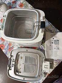 Friggitrice a olio De longhi F13205, 2,5 kg, 1200W. Usata 3 volte per cui il cestello presenta un po' di usura da utilizzo, come evidenziato in foto. Perfettamente funzionante.