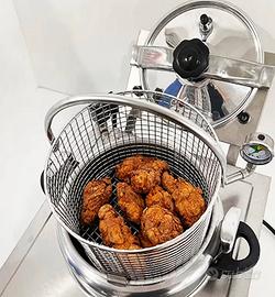 La cottura a pressione è una vera innovazione: permette di ottenere cotture più rapide, carne più succosa e tenera e una croccantezza uniforme, con risultati costanti e qualità superiore rispetto a una friggitrice tradizionale. Ottima per pollo fritto, alette, cosce, ma anche altre preparazioni che richiedono resa e velocità.