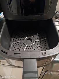 Vendesi friggitrice ad aria usata 3 o 4 volte max, dotata di tasto menù con 10 funzioni per impostare in automatico temperatura e durata in base alla tipologia di cibi selezionati inoltre possiede funzione "skake" con funzione di promemoria per ricordare di girare i cibi a metà cottura. Dotata anche griglia di cottura dimensioni cm 20x20 e display per visualizzare la cottura dei cibi. Manuale e scatola in possesso in quanto ricevuta in regalo 4 mesi fa . Rispetto al prezzo di listino vendo a metà prezzo.