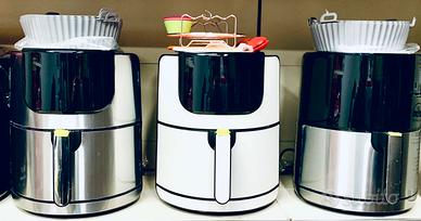 La friggitrice ad aria calda o comunemente nota come friggitrice senza olio, è una macchina che consente di friggere gli alimenti senza grassi (olio o burro) ma con il calore accumulato nella camera di cottura.