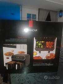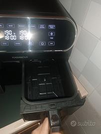 Due cestelli indipendenti da 4 litri ciascuno per cucinare 2 pietanze, come pollo e patatine, con modalità di cottura differenti ma pronte nello stesso momento. Si riscalda in pochi minuti e potrai cuocerci di tutto, dalla carne ai dolci.perfettamente funzionante.