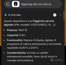 OFFERTA VALIVA FINO AL 6 MARZO FRIGGITRICE AD ARIA 8L DIGITALE POTENZA 1800W