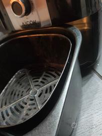 Friggitrice ad aria Aicok AHF001 ha dimensioni che almeno per lo spazio che ho in cucina risultano ingombranti – 31 x 31 x 25 cm – ma sono in effetti giustificate dal fatto che si tratta di un modello L, pensato per 4 o 5 persone. Nonostante questo, è una friggitrice ad aria molto semplice da usare e maneggevole da spostare, considerato che pesa meno di 6 chili. L’esterno della friggitrice AHF001 è interamente in plastica, priva di BPA, che non contiene quindi materiali nocivi alla salute. L'interno, invece, è in acciaio inossidabile, il che la rende molto robusta, mentre il cestello è rivestito con materiale antiaderente. Sono tutti materiali che rispettano l’ambiente e la salute se curati a dovere, soprattutto durante la pulizia, dove è meglio usare spugne e prodotti non abrasivi. Dopo il suo utilizzo sarà sufficiente un panno bagnato e ben strizzato per eliminare eventuali impronte. Il modello AHF001 presenta un display esterno e ha 7 programmi di cottura, un timer che va da 0 a 30 minuti e una temperatura regolabile tra gli 80° a 200° gradi.